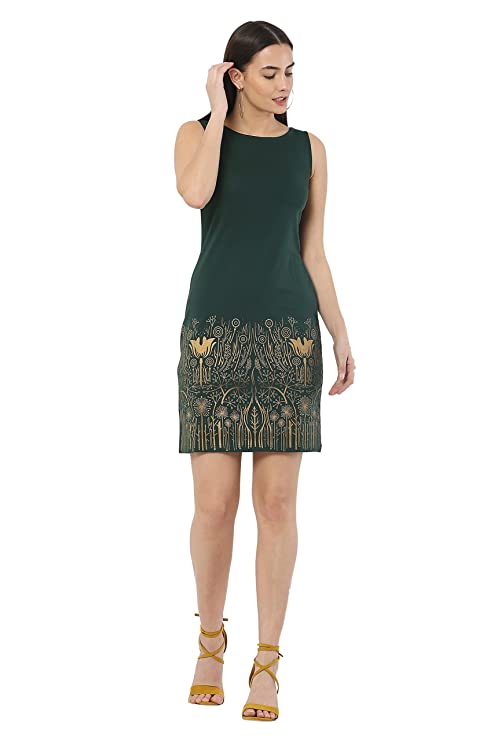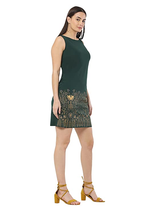 Hams Style Women’s Printed Sleeveless Green Dress – Imported Soft Hosiery with Lycra