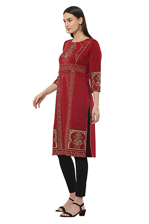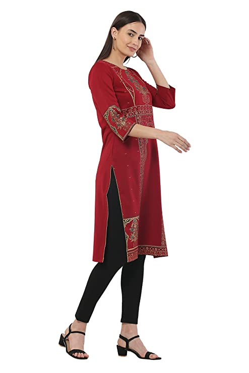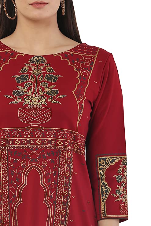 Hams Style Women’s Red 3/4th Sleeve Printed Kurti – Imported Soft Printed Hosiery with Lycra